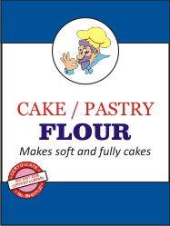 | Multi-Purpose Flour Our #1 Flour for Bakers Moisture (max)=14% Gluten = 10(+/-2), T.Ash=0.5(+/-0.1), FN=250(+/-30 sec), WAP=62.0%(+/-2) WType = Hard Wheat | Noodle Flour Specially made for noodles Moisture (max)=14% Gluten = 9(+/-1), T.Ash=0.4(+/-0.1), FN=280(+/-30 sec), WAP=53.0%(+/-2.0) WType = Hard Wheat | Cake / Pastry Flour Makes soft and flully cakes Moisture (max)=14% Gluten = 8(+/-2), T.Ash=0.4(+/-0.1), FN=470(+/-30 sec), WAP=53.0%(+/-2) WType = Soft Wheat |